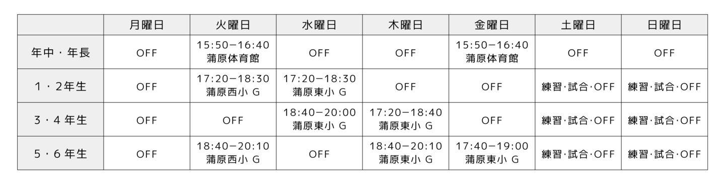 - 各学年、土・日曜日に練習スケジュールが変更になる場合がございます。